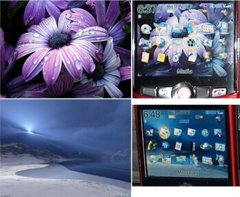 The CrackBerry site has lots of free Wallpaper and Ringtones for BlackBerry users to put on their devices. I browsed around and saw some beautiful wallpaper. I like how you can get them on your device. You can choose to download a wallpaper to your computer or you can send the wallpaper to the device via email. That's the route I chose as it was simple and saved me some steps. The first wallpaper I chose was a beautiful purple daisy. I sent it to the Curve via email. And there it was in the gmail account. When I looked at my email, there was a link to click on so I clicked on the link and it allowed me to download the wallpaper on the Curve. Next I opened the image on the Curve and then simply saved it as my wallpaper for the Home screen. Before I even saw the purple daisy as the background, I had a feeling that it would be too dark and busy for the icons to show up. And I was right. But that was okay, because there were many more pics to choose from. Next I chose a frozen shoreline and it was a perfect background for the icons.