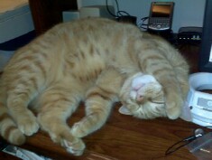 I enjoyed using a smartphone with a 2MP camera, and thought the flash was a great bonus. There have been so many times when taking pics with my Treo that I wished I had a flash because of poor lighting conditions. I wish all smartphones with cameras had flashes. Here's a pic I took of Charlie, my Orange Tabby. He is one of my three Tabby cats. Boomer is a Brown Tabby and Haji is a Blue Tabby. Most of my Treo pics are of my cats. They make good subjects because they're always with me, especially Charlie. He's always in here on my desk when I'm working. No matter how messy my desk is, he'll find a place to snooze or watch me work. Snoozing in this case as you can see.