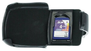 Perhaps the reason this product is named Hold N Store is that it holds your Treo while storing an extra SD Card horizontally in a little cranny. The fit seems reliable, but be sure the card slips into the slot correctly. Youll know if its wrong itll fall out if you tap it lightly.