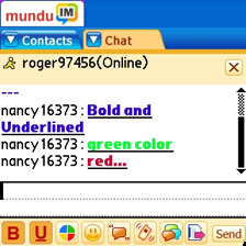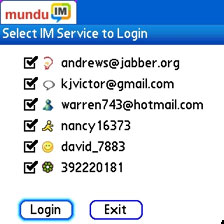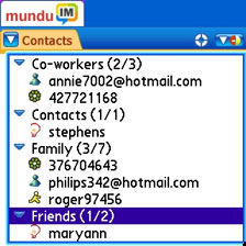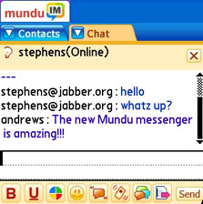 Instant messaging through Mundu is smooth sailing and you can use your web browser, SMS client and Mundus services all at the same time, though lamentably you cant send or receive IMs when you are talking on the phone as PalmOS Garnet's lame multitasking isnt capable of running phone and web connections simultaneously.