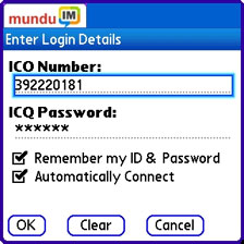 Installing MunduIM is a breeze, since Geodesic distributes it as a PRC file, which means you can slurp it down over your wireless Internet connection directly from their website. Once downloaded to your Treo, just tap the installer to expand it and it does the work all by itself, finally settling down to one program file (650KB) and ten library files (384KB) for a grand total of 1,034KB, all of which MUST reside in your Treos internal RAM.