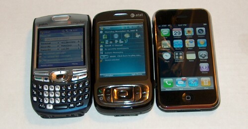 I can really feel the weight difference between the Tilt and the 680. The Tilt seems more brick-like to me in that it's heavier and has a more squarish shape. Holding the Treo 680 to my ear feels more natural. Between the 680, Tilt, and iPhone, the iPhone comes in last for comfort when talking on the phone. I think I've mentioned before how slick the sides of the iPhone are. Kevin brought this up in his Apple iPhone First Impressions article. He even dropped the iPhone a few times.