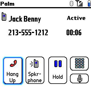 Pressing the hardwired green wing button (on a Treo 700p) does nothing, whereas the red wing (or red phone on a 650) button does not end the call, but rather dims your screen, which returns to the call screen when you turn it back on again. Pressing the phone app button also behaves abnormally, so do your best to avoid these blunders and stick to FC's on-screen functions only.