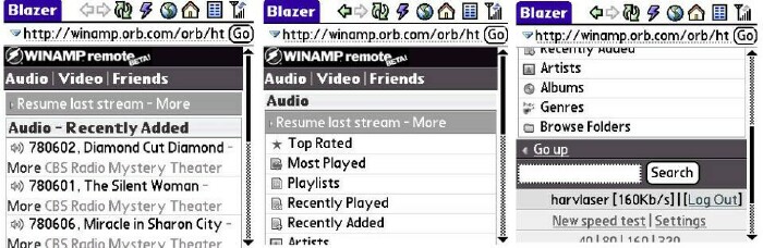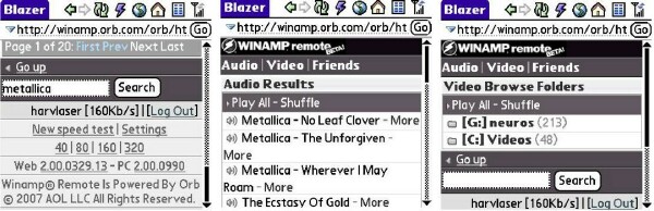 But along comes the new Winamp Remote Beta ("WR)", and I now have Treo access to ALL the audio and video on my computer's drives, and I don't have to process, convert, scale, or upload any of it anywhere.