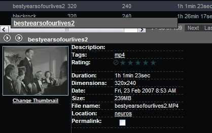 You can also preview the details of video files with a thumbnail by just hovering your mouse over their names in the list of files: