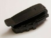 Thoughtfully, Helix includes two clips with the Holster II. One is an open-ended over-the-waistband (or whatever) slide type clip that rotates a full 360 degrees with detents every 90 degrees. The detents make it easy to use the holster vertically or horizontally, upside down or not. This clip simply slips over the button built into the holster, becoming trapped there by a spring mechanism internal to the clip itself. Push the release lever to make it let go.