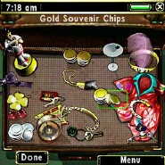 As you achieve different goals in AC, such as playing all eight games at least once, hitting $10,000 wins in certain games, and other delights that almost never happen in real life, a cute feature of AC, its Souvenir Case, fills up with interesting little goodies for you to "take home" with you, such as Bronze and Gold Chips, a Lucky Rabbit's Foot, a showgirl's hat, show tickets, and even the keys to a luxurious Executive Suite hotel room. I have yet to accumulate EVERY souvenir, so I don't know if something special happens on that occasion, and even if I did know, I wouldn't tell you and spoil it.