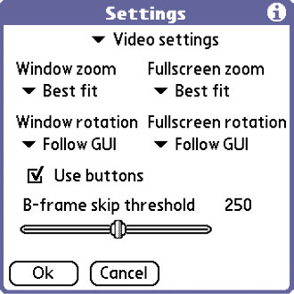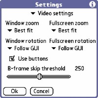 Interestingly, MMP's manual claims that the program operates at peak efficiency at 2x zoom, which means that if you have tons of very tiny movies, they will play better. Considering the infinitesimal size of your Treos screen to begin with, the videos would have to be pretty miniscule in order for them to be anything resembling full-screen at 2x zoom. I suppose you could re-encode your library for MMP, but somehow a pile of movies at 160x160 or 80x80 resolution just doesnt sound appealing.