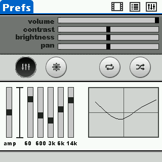 Another oversight is that the volume slider is not right out in front, but nonsensically located in the tuning menu, so if you want to twiddle the volume, you have to pop open that menu to toggle it. You can, thankfully, utilize your Treos side volume rocker buttons to manipulate the volume, but only in steps and stages, not just a hair more or less. If nothing else, the volume slider ought to be right out front where you can easily get at it, directly adjacent to the time slider under the video display.