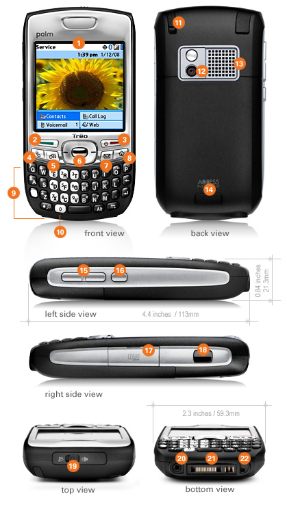 While most of the basic internal and physical specs of the 700p and the 755p (CPU clock speed, memory, screen, multi-connector, audio jack, camera resolution, and many other bits) are the same between the two models, and while they both run PalmOS Garnet V5.4.9, the 755p is closer to the Treo 680 in its physical form factor. Close to, but not identical, and with one VERY important difference Ill get to shortly..