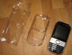 By the way, the Crystal Case worked exactly the same. In fact, the only difference between the two is that the Crystal had two clear pieces to snap together and the Hybrid had a clear front and a rubberized back. They both had cutouts on the front for the screen and keyboard, on the back for the speaker, camera and stylus, on the top for the ringer off button, and on the bottom for the power and Hot Sync plugs.