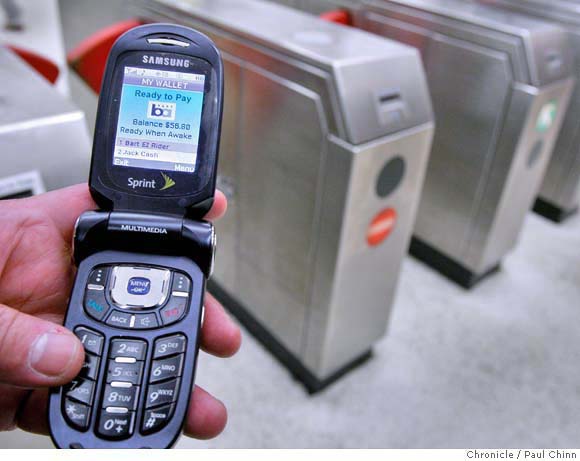 The $200,000 pilot project, which will be tested by about 230 riders for the next four months, utilizes a wireless chip that lets people pay by passing their phone over a wireless reader. BART has been using the contact-free technology in its EZ Rider pilot program, which allows riders to pay at the turnstiles by waving a plastic card that has a wireless chip. Participants will be using Sprint and Boost mobile phones that have been outfitted with the chip. As with the EZ Rider program, which began a year and a half ago, users can load up to $48 on the chip from a credit or debit card account by visiting BART's Web site.