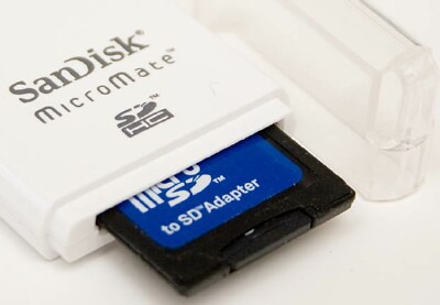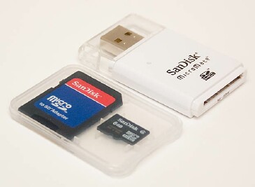 Heres where SanDisks thoughtfully included reader/writer comes in quite handy and very welcome. This thing hooks up an SDHC card (micro SDHC via the adapter thats also included) to a computers USB port.