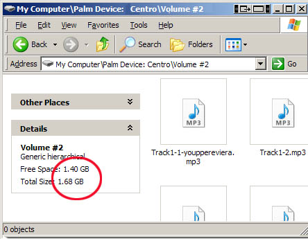 Heres the fun part. Copy files from your computer to the card. For simplicity, dump them into the cards root directory. On Windows machines, you might find these in My Music. Open My Computer, open My Music (or wherever), and drag the icons for the music files onto the icon that appears for Removable Drive. Thats the card. A native Centro, without added third-party software, wants MP3 music files. The music app that comes with the phone Pocket Tunes will also handle WMA format files and a long list of others. If you're having trouble with these files on your Centro, download Pocket Tunes' (free!) version 4.06 update. It's an easy process to download and install, especially if your Centro has a useful data connection. [Ed. Note: This paragraph has been corrected since the original publication]