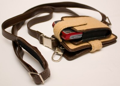 The case comes with a shoulder strap, something Im glad to see, as Im low on pockets. I keep a pocketable digital camera with me so prize winning snapshots wont happen while I dont have a camera with me. To read things, I carry reading glasses I cant face bifocals. My pants pockets are occupied with parking meter change, a vial of headache pills, and other necessities that I wont bore you with. So, it seems like a great idea to sling a strap over my shoulder and tote this handy little cell phone case like a purse. And get away with it.