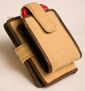 CellKeeper keeps your phone reasonably protected, while offering handy wallet style storage for other stuff you might need. The case and its contents totes in a pocket or purse or swings from a shoulder and adorns your person. Its a well-designed, well-made, good-looking case of herringbone cotton and manmade materials. It fits all of the Palm models, but works best for the smaller devices, like my crimson Treo 680 and my (red!) Centro..