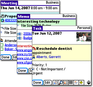 Agendus for Palm OS version 12 includes powerful journaling capabilities, a personal project manager, all new at-a-glance or Card views now more colorfully organized and streamlined, a new Contact View "Photo Dialer" mode, support for attaching items (documents, images, etc.) to meetings, tasks, memos and contacts and standalone alarms, just to name a few.