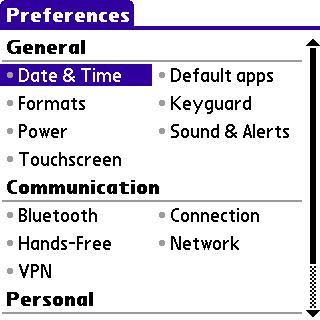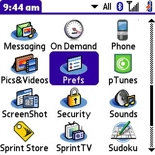 Tap Prefs. You could instead highlight it, using the 5-way Navigator buttons, and press the Center button, or the Return key. In fact, you dont have to whip out the stylus. A fingertip will usually do the trick. I find the stylus easiest on the resulting screen, however, but in all of these tutorials, when I say tap, do the highlight-and-Center-button thing instead if youd rather.