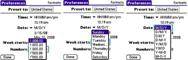 - Formats. Perhaps you frowned at time and date being displayed wrong for your taste 24-hour instead of 12, for example. This Preferences option lets you set that the way you want it, as well as the order of day, month, and year, plus your preferred punctuation for dates, times, and numbers. Tap your choices, and tap Done.