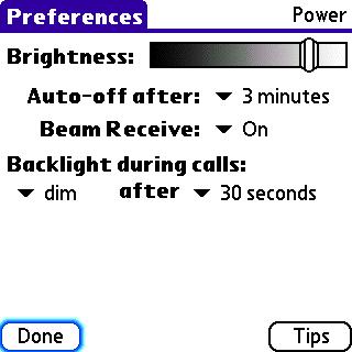 Screen brightness does what youd expect, but Prefs isnt the only place you can change it. You get the same control directly from the keyboard without opening Prefs. Press the Option key (leftmost in the second row from bottom), and then press p it has a Sun on it to remind you. Use the stylus or the 5-way Navigators Left and Right buttons to adjust the slider.