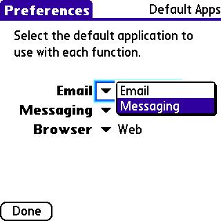 - Default Apps. A big feature for the Centro, and a valuable one, is its ability to run thousands of programs that add features and capabilities. The native applications can be replaced or augmented with other software. This Preferences item is where you set up which programs the hardware buttons load for each of: Email, Messaging, and Browser. I recommend leaving these at their defaults until you have a reason to change them. And something to change them to.