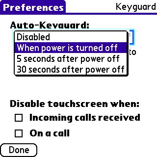- Keyguard. This item controls how the Centro decides when and whether to lock the keyboard against accidental (or otherwise) input. For example, If you carry your Centro in your pockets - well, you know. Do your own thing, by all means, but I like the default. It locks the keyboard anytime the display is off, leaving the Power/End key recognized so you can un-blank the screen, and it enables the touchscreen and the green Call/Send/Answer button when a call comes in.