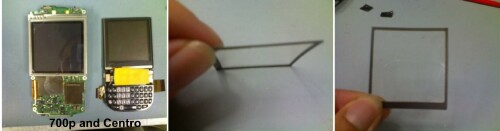 I thought that I would post some images of a Centro screen next to a 700p so you can see what Palm is talking about. As you can see from the pics, the Centro LCD is actually thicker than the 700 do to this protective layer which you can clearly see. Let me state this again, this is not user replaceable it is pressed into the LCD as the top layer with a border of foam/sponge to help absorb shock. The LCD is still glass and will break just like all other LCD's, this one is just more scratch resitant. If you carry your Centro in your pocket with change/keys/cig lighter. IT WILL GET SCRATCHED. If you are wary, put a screen protector on anyways. They are so clear now, the only way you will be able to tell is if it is hand cut. Once exact protectors(machine cut) are made this will be a none issue. You should get equipment protection anyways for such a high tech device. Just my 2 pennys.....