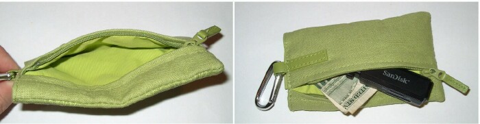 There is a sturdy D-ring in a neat carabiner style that comes with the Golla Joy. This D-ring is identical to the one on the Golla Gale Brown. There is a leather lanyard ring sewn onto the top back of the pouch for the D-ring to clip into. The green leather matches the zipper pull.