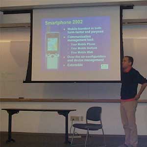The conference opened with a discussion of Mobile2Market . It was demonstrated how one could search for applications over GPRS and download them directly to a Pocket PC. Payments are handled by the mobile carrier. This type of purchasing system can be very useful to mobile users who don't want to have to enter their credit card number every time they make a purchase, and makes it less of a hassle for developers who don't want to have to register their wares with multiple websites; it will only be necessary to register with a few catalogues to make software available to all mobile carriers.