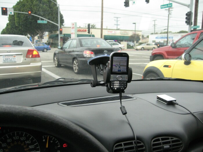 The receiver has three small status lights. The GPS signal light, counterintuitively, is continuous when the unit is searching for satellites, blinking when their positions are found. The Bluetooth light flickers when searching for other BT devices, blinks fast when transferring data, and blinks slowly on normal standby mode. The battery light is red on low power, green when charging, and off when fully charged. The receiver uses a li-ion battery that charges through a mini-USB connection to a vehicle power adapter (or cigarette lighter adapter if you live somewhere other than California, where no one smokes), also included, that charges the phone as well. Its disappointing that Palm did not include a wall charger, as it would have been nice to keep the unit charged without trailing wires over the dashboard, which is rather gauche. Nowhere could I find specs for the battery life, but I left the unit unplugged for two of the three days I tested it, and at no point did the low power light come on.