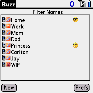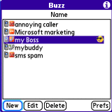 Buzz provides two distinct functions that are sorely lacking from the PalmOS Phone application: the ability to use MP3s (as well as .wav and .ogg files) as ringtones and to block certain callers from calling you. MP3 ringtones are a ridiculously complicated piece of business on the PalmOS smartphones that handle them (Treo 680 and Centro only, as far as I know) and other than turning off your phone or muting the ringer in preferences, you cant block people from calling you. Buzz does a fairly good job of managing the MP3 ringtones, but the call-blocking leaves a lot to be desired.