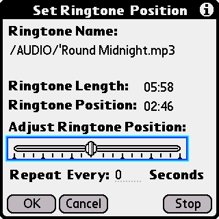 Two interesting features come to light while adjusting the preferences for MP3 ringtones. First, you can choose a portion of the audio file to use for the ringtone, which means your ringtone doesnt have to start at the beginning of the song. But the UI severely hampers this feature, as it employs a buggy little slider that makes finding the exact point in the song a truly soul-sapping experience. If there were only a field where you could just enter 2:46 instead of tweaking that miserable slider, Buzz would be a much better ringtone manager.
