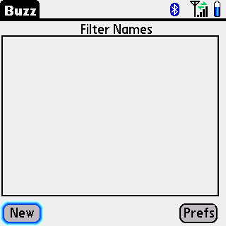 When you open the Buzz application, you are greeted with a most unwelcoming opening screen. No pretty graphics or fancy text or any immediate indication as to where to start here, just the good ol Filter Names screen. This is the main screen for the application.
