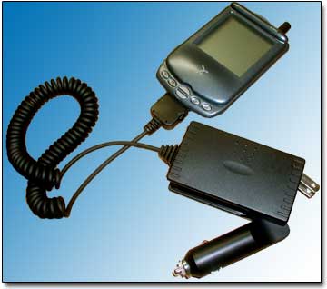 The 2 in 1 charger incorporates both a standard electrical outlet plug and a cigarette lighter plug built into one unit with an adapter that fits all Treo models.