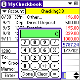 As you enter transactions into MyCheckbook, you can also input check numbers and information in a "memo" space at the bottom, just like a real check. A history of your transactions are kept in a .pdb (Palm database) file, and you can purge the history or keep it as you see fit. Also, MyCheckbook allows you to export your transactions as a CSV, TAB, or QIF file. An autocomplete feature is included in this app, so recurring transactions are saved in memory and will autocomplete as you enter the information. Even a small pop-up calculator is included in this app -- now where do you get SO much for a FREE app??