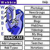 Webbie, by Handcase, is a suite of 10 programs integrated in an only interface with Photologs, Blogs, Newsgroup, Murals, Videologs, WebSites, Foruns, Searches and Notations. With it it is possible to organize all the information on the communication channels of web. With it is possible organize and remember the update of its Blog.