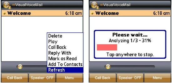 MotionApps has done a fine job creating a clutter-free, eye-pleasing interface, which is good news since this is where you will spend most of your time in the program. Clicking on the "Menu" button on the bottom-right corner of the screen brings up yet another list of options - short-cuts to your most-used functions. Selecting refresh will stir the voicemail engine into life, and any email messages with voicemails will be sucked in like a Hoover on steroids.