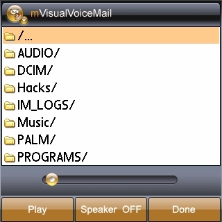 This feature of mVisualVoiceMail is one that most will probably not utilize very often, as most voicemails will either be played from the internal interface or directly from an email message. However, if you find the need to search for a downloaded message, you can do so by clicking on the menu button on the keyboard, selecting "Open File" and navigating to the location on the memory card where the file is saved. Short and sweet, but there if you need it.