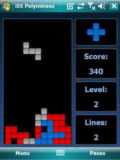 iSS Polyminoes is a highly addictive logic-based puzzle game. The goal of the game is to accumulate as many points as you can before the polyminoes pile up and reach the top of the screen. Gain points and valuable space by fitting the falling colored shapes into unbroken horizontal lines. Each complete line that you make clears away that row of blocks and gets you closer to moving to the next level. Watch out, advancing levels means increased speed!