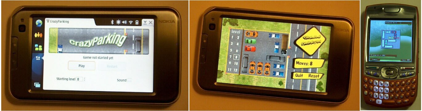 When I first got the Nokia N810, I saw that some games were included such as Chess, Blocks, Mahjong, and Marbles. I haven't played Chess since I was a teenager so haven't fooled with that one yet. I love Mahjong so I've played quite a few rounds of that one. I went searching online for some other games and came upon a free version of CrazyParking by Luciano Wolf on maemo.org. CrazyParking is pretty much an equivalent to the Palm OS game Traffic Jam by eSoft Interactive. CrazyParking is soooooo much fun and is so addictive! I decided that I wanted to get Traffic Jam on my Treo 680 so I downloaded it and tried playing it. Unfortunately, Traffic Jam isn't compatible with the Treo 680, but Traffic Jam 2 is. But you can get Traffic Jam, the original, for your Centro. I prefer the first version personally. The graphics look better to me. Traffic Jam and CrazyParking are both a lot of fun and are very addictive! Both have great graphics and cute sounds. I find that CrazyParking is more challenging though when it comes to getting those little cars out of the jammed parking lot.