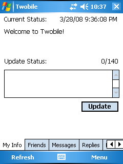 On the Windows Mobile side, there are a few options, but the two most popular clients are Twobile and Tiny Twitter. Tiny Twitter is also available in a J2ME version of Blackberries and feature phones.