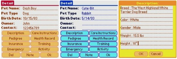 Pet Care, by ieosoft, is a handy program to store all the information you'll ever need for your pet on your palm, including: