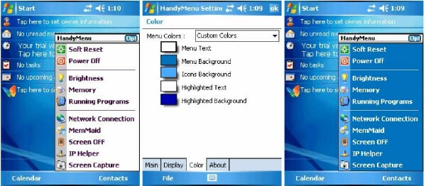 With HandyMenu you will have the functions that you use most accessible with a simple tap on your Pocket PC screen.