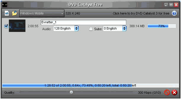 It is a FREE version of the award-winning DVD Catalyst applications, and while not as feature-packed as DVD Catalyst 3, DVD Catalyst Free does support the most popular video player devices.