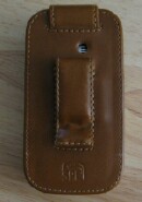 On the reverse side, it is all brandy (tan) with the Smartphone Experts (SPE) logo branded into the leather, just below the belt clip.