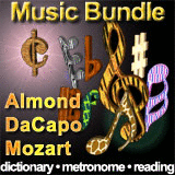 This bundle includes our popular music applications Almond, DaCapo, and Mozart at a great price. It gives any music student a headstart with the most common needs - learning to read music, music terminology and a metronome. A GREAT gift to anybody who studies an instrument at any level. These programs are used in many schools and a great tool for music education. All applications are also available separately.