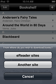 I downloaded eReader 1.1 on my iPod touch last week and it was really easy. I went to the AppStore on my iPod touch and went to ebooks. Then I searched for eReader. I found the option to download eReader 1.1 and clicked on it and downloaded it. And for Free of course! Since I already have a login at eReader's website, I went there on my iPod touch and went to my bookshelf. I had a couple of ebooks there that I haven't read yet, so I downloaded them to my iPod. It was all very simple and fast. I've been enjoying reading ebooks on my iPod touch. It's very similar to reading on my Centro and Treos except for the screen being larger and when I want to turn the page, I swipe my finger on the screen to the right and the page turns. Pretty neat!