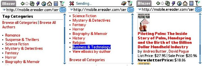 After I got "Ice Hunt", I went back to eReader's mobile site and looked at the categories of eBooks. I clicked on Business & Technology and browsed that category. And look what I found: "Piloting Palm: The Inside Story of Palm, Handspring and the Birth of the Billion Dollar Handheld Industry". Looks like a good choice, huh? ;-)