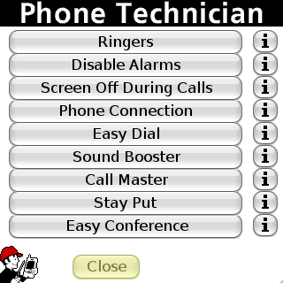 Unlike some utility packs, Phone Technician is a single app with individually named functions in its own launcher, not unlike mTools. Hobbyist Software also bundles Technician in a suite called TreoTastic Bundle, featuring their most popular app, Butler, along with Genius! and Reset Doctor.