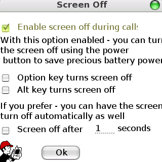 Simple but not trivial. This turns off the screen during phone calls a huge battery saver. Now when I talk on a cell phone at the movies, other people in the audience are only annoyed by my voice, not the glowing screen.